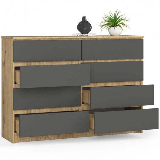 Funktionel og stilren kommode til hjemmetAkord K120 kommode med 8 skuffer og en bredde på 120 cm er et funktionelt møbel med minimalistisk design. Kommoden passer perfekt til hjemmekontoret, stuen...