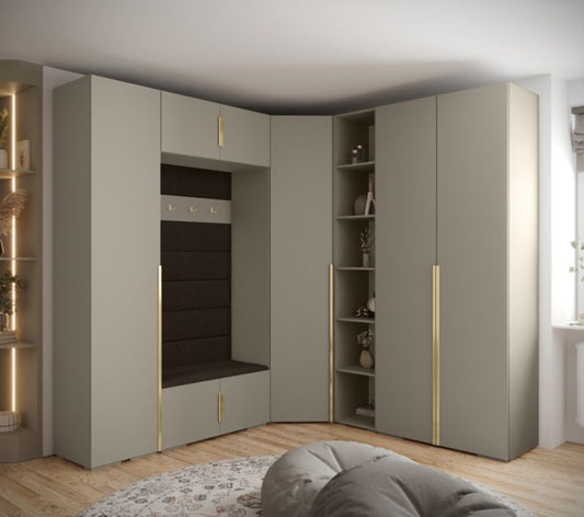 Gør din entré til hjemmets smukkeste visitkort med dette luksuriøse INOVA-sæt. Med en elegant kashmir-finish og glitrende gulddetaljer får du stil for alle pengene. De bløde, polstrede paneler skaber en...