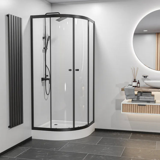 Design og funktionalitetHalvrund brusekabine Arkell på 90 × 90 cm med lav brusebund i mat-sort er et fremragende valg til moderne badeværelser, hvor pladsen er begrænset. Kabinen kombinerer elegant design...