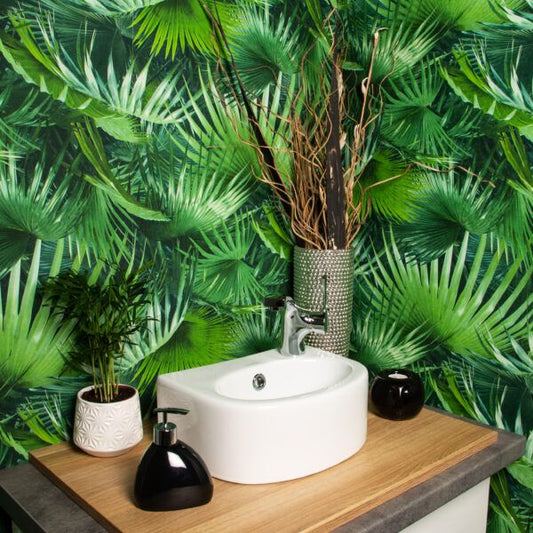 Unikt design til badeværelsetDet usædvanlige mønster giver badeværelset et særligt præg. Den sorte overflade med hvid dekor på ydersiden er et modigt valg, der skiller sig ud.