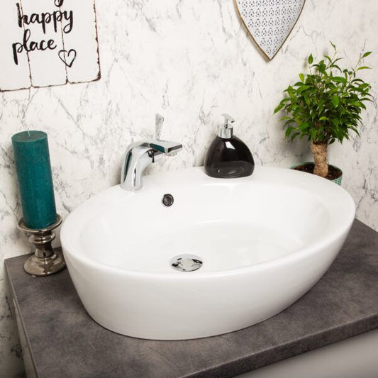 Design og eleganceOval bordmonteret vask med en hvid, tidløs finish, der passer perfekt til moderne badeværelser.Praktiske funktioner