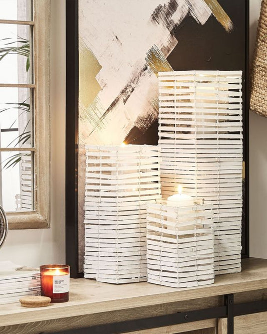 Elegant belysning til spisebordetDette sæt med dekorative lysestager giver dit spisebord et varmt og indbydende skær fra stearinlys. Hullerne er designet til kegleformede lys, og de tre separate dele kan...