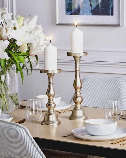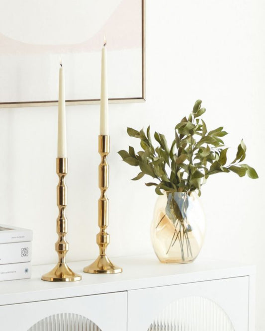 Elegance i klassisk designBring elegance i traditionel stil ind i hjemmet med dette to-delte sæt lysestager. Deres høje og dekorative former er designet til brug med lange stearinlys, hvilket gør...