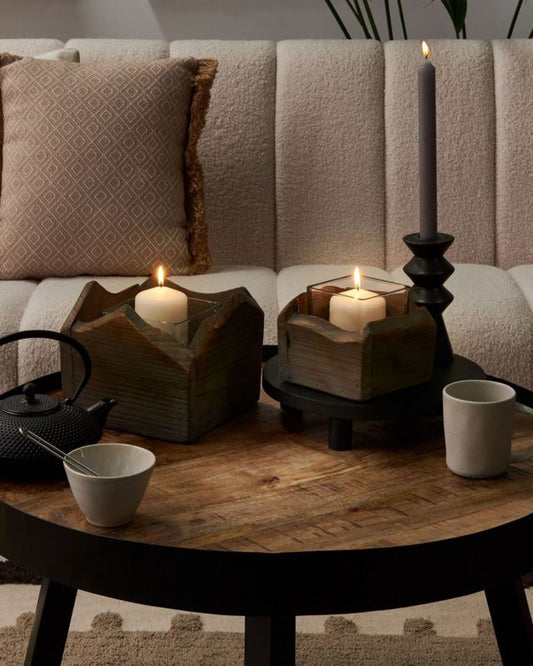 Design og atmosfæreDette sæt med 2 lysestager i forskellige størrelser er et fremragende valg for alle, der værdsætter et naturligt og rustikt udtryk i indretningen. Den patinerede, rå finish skaber...