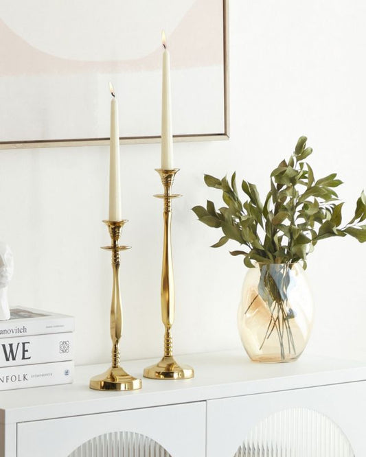 Disse elegante lysestager, inspireret af victoriansk stil, vil med garanti forvandle udseendet i din stue. Fremstillet af tykt glas, fanger de opmærksomheden med deres form og kombinationen af klassisk gylden...