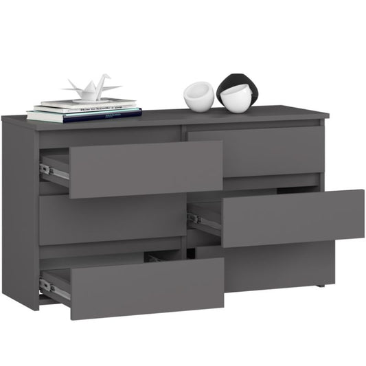 Fleksibel og rummelig kommode til moderne hjemAkord K140 kommode med 6 skuffer og en bredde på 138 cm er en kompakt og praktisk møbel, der tilbyder rigelig plads til opbevaring...
