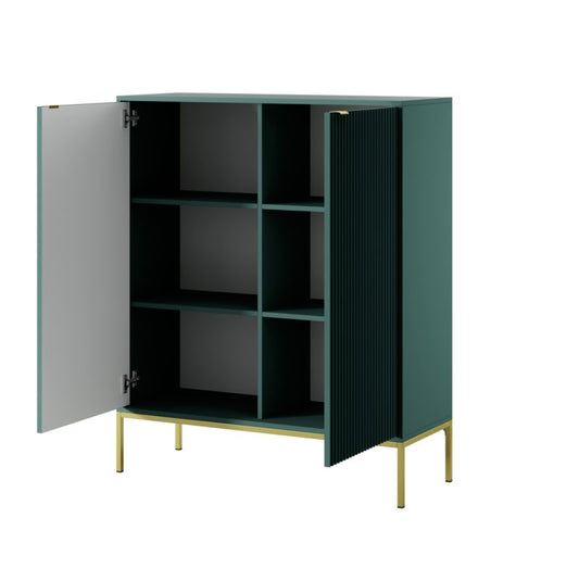 Moderne elegance i grønTo-dørs kommode Bettso Nova er et fremragende valg for dem, der værdsætter moderne design kombineret med et luksuriøst præg. Med sine karakteristiske rillede fronter tilføjer den et...