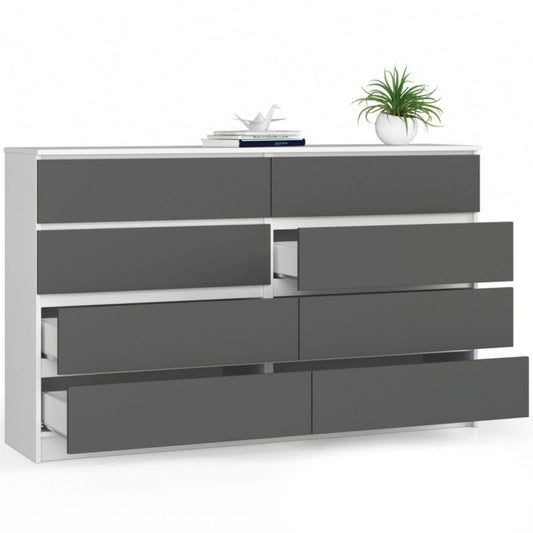 Funktionel og moderne kommode til hjemmetAkord K120 kommode med 8 skuffer og en bredde på 120 cm er et funktionelt møbel med et moderne design. Kommoden er et fremragende valg...