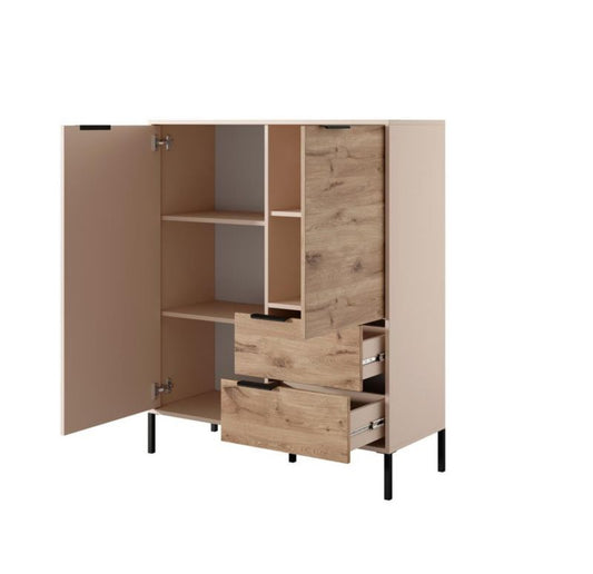 Design og eleganceModerne og funktionel kommode Molly i lys beige, der passer perfekt til både stue og entré. Den minimalistiske kommode har rummelige skuffer, ideelle til opbevaring af dokumenter og...