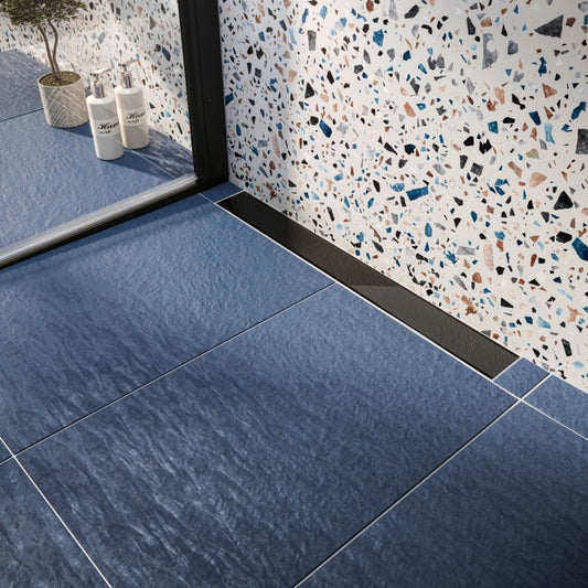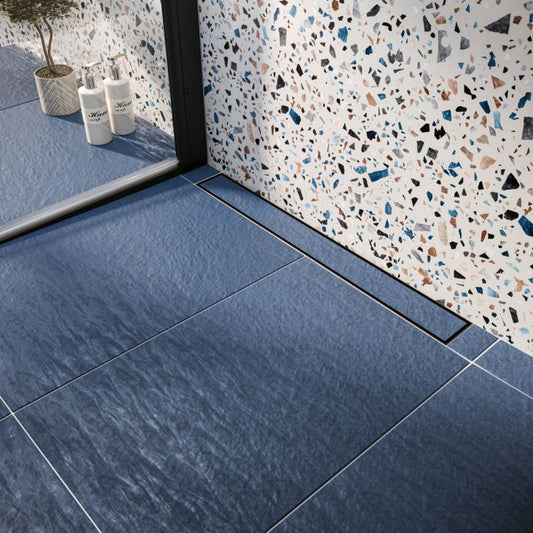 Moderne og holdbart lineært afløb til badeværelsetVogi lineært afløb i rustfrit stål med en dyb sort glasrist, der sikrer en glat overflade, som modvirker snavsophobning og gør rengøringen enkel. Fremstillet...