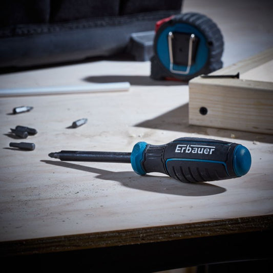 Fremragende greb og holdbarhedErbauer torx-skruetrækker med sikkerhedsfunktion og behageligt Pro-torque greb er designet til optimal kontrol og komfort. Den sandblæste spids sikrer bedre greb på skruerne, hvilket forhindrer værktøjet i...